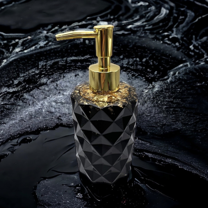 Seifenspender eckig schwarz/gold personalisierbar