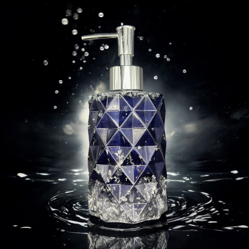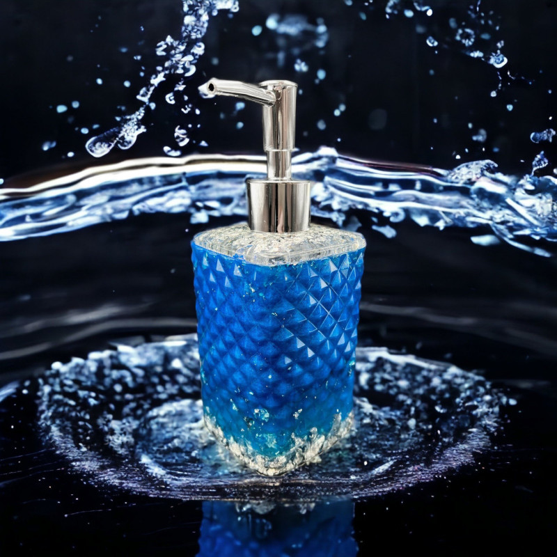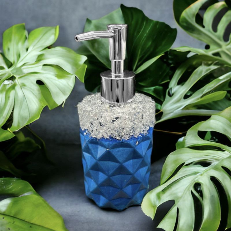 Seifenspender eckig blau/silber personalisierbar